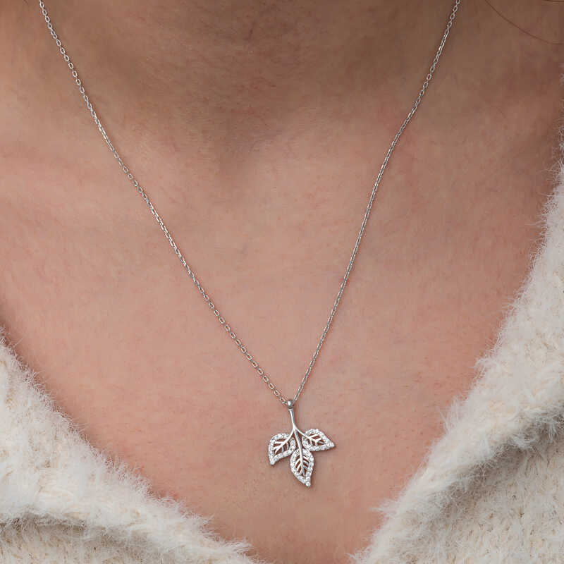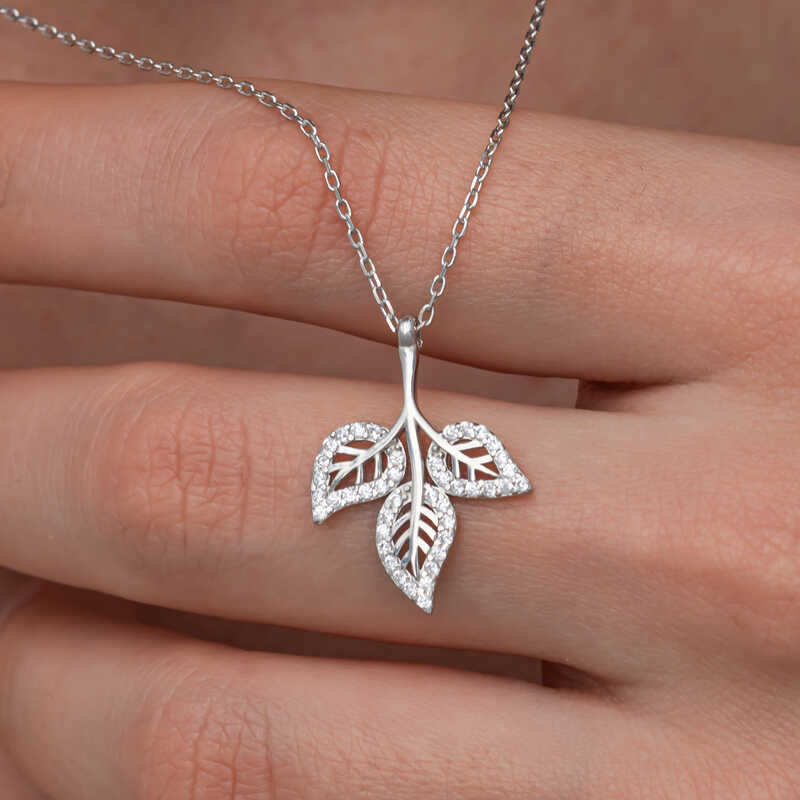 Gümüş üç yaprak kadın kolyesi, genellikle şans, aşk ve koruma temalarıyla ilişkilendirilir.Yapraklar mevsim değişikliklerini simgeler; özellikle sonbaharda dökülen yapraklar, değişim ve yenilenmenin işareti olarak görülür. Bu bağlamda, yaprak kolye yeni başlangıçları ve kişisel dönüşümleri sembolize edebilir.