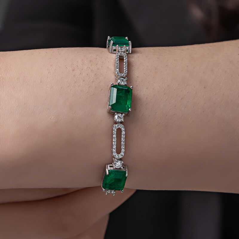 Gümüş Yeşil Renk Kare Paraiba Taşlı Kadın Bileklik