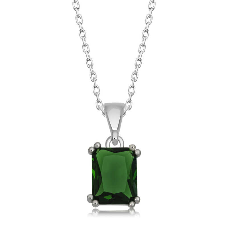 Gümüş Yeşil Zirkon Baget Taşlı Kadın Kolye