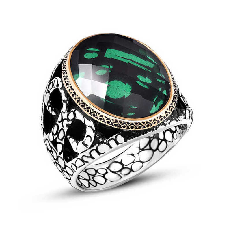 Gümüş Yeşil Zirkon Taşlı Erkek Yüzük