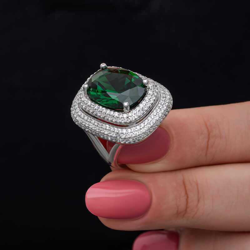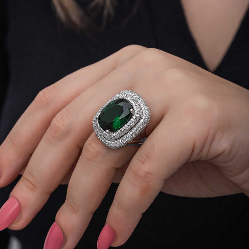 Yüzyıllardır imajınızın simgesi olan takılar, birbirinden özel tasarım koleksiyonlarda sizlerle buluşuyor. Günlük hayatınızdan özel günlerinize kadar her anınızda yanınızda olan gümüş yüzük modelleriyle sizlerde tarzınızı yansıtın. Bu birbirinden farklı dikkat çekici tasarımlar sayesinde ruhunuza hitap eden yaratıcı özgünlüğü ortaya koymaya başlayın. Hayalinizdeki kombinleri gerçeğe dönüştürebileceğiniz gümüş yüzük çeşitleri ile girdiğiniz her ortamda ilgi çekici stiliniz ile ön plana çıkmak artık çok kolay… Yeşil zirkon taşlı kadın yüzük 925 ayar gümüşten imal edilmiştir, üzerine rodyum kaplama yapılmıştır. Gümüş yüzük modellerimizin tamamı el emeği ile üretilmiştir. Gümüş ve değerli taşlar nedeniyle belirtilen ortalama ürün ağırlığında ± %10 sapma olabilmektedir.