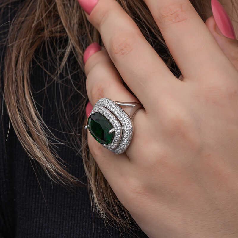 Gümüş Yeşil Zirkon Taşlı Kadın Yüzük