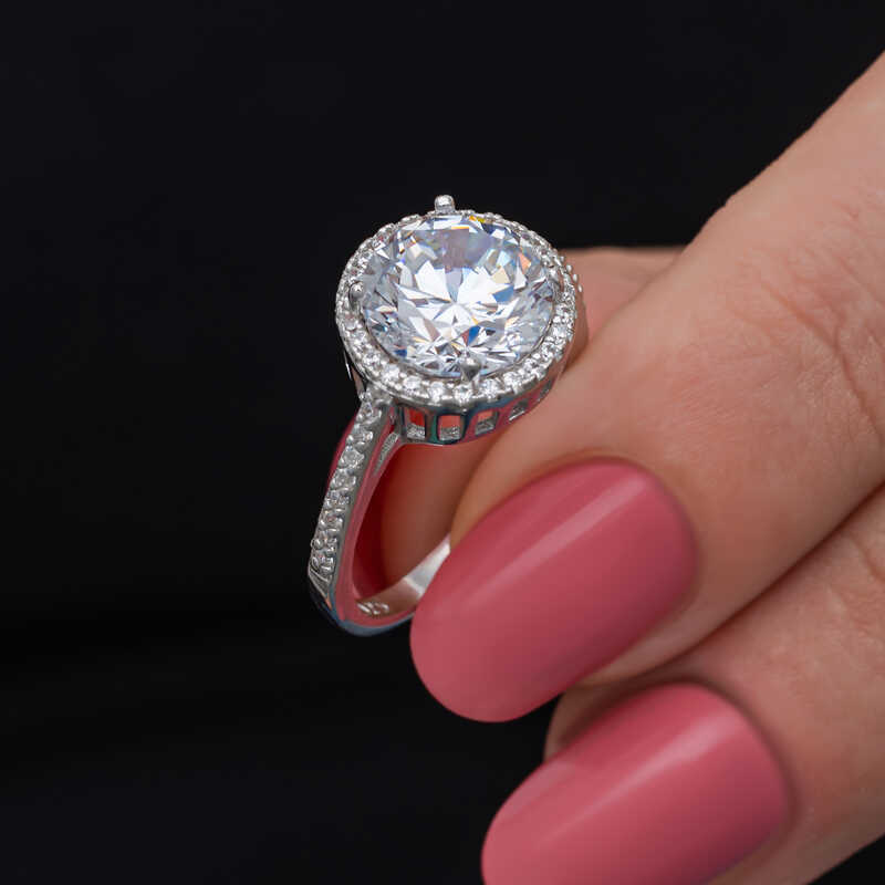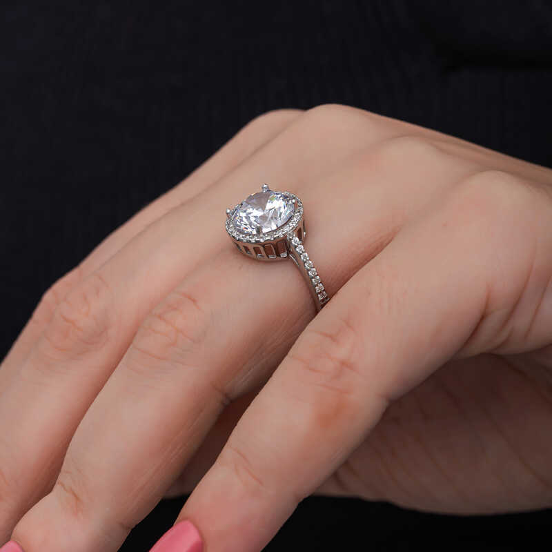 Gümüş Yuvarlak Montür Tek Taş Kadın Yüzük
