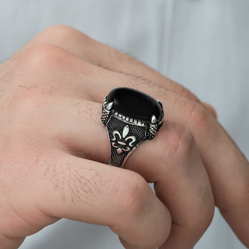Zambak çiçeği; (Fleur De Lys) beyazla eşleştirilen, temizlik, bereket, saflık gibi kavramları temsil eden zarif bir semboldür. Hristiyanlıkta Meryem Ana’ya atfedilir, aynı zamanda Fransız kraliyet ailesinin gayri resmi sembolü olarak benimsenmiştir. Binlerce yıllık bu sembol tarih boyunca farklı dinlere mensup bir çok toplum tarafından kullanılmıştır. Osmanlılar Mohaç seferinde gördükleri bu işareti beğenmiş ve biraz değiştirerek kullanmışlardır. Topkapı Sarayının 2. kapısı, Milet İlyas Bey Camii mihrabı, ve Urfa Rizvaniye Camii"nde örnekleri görülebilir. Meksika’nın Teotihuacan piramitlerinde bile bu işarete rastlanabilir. Bir Hawaii öğretisi olan Ho’oponopono‘ya göre; Fleur De Lys, sürekli mücadele etmeye ilişkin önemli bir arınma aracıdır. Bu nedenle, size arınmanız gerektiğini hatırlatması ve yolunuzda destek olması için evinize veya iş yerinize koymanız tavsiye edilir. Bu şık yüzüğü; kendinize ya da sevdiklerinize özel günlerde hediye etmek için tercih edebilirsiniz. Bu şık yüzük 925 ayar gümüşten imal edilmiştir. Gümüş üzerine oksit kaplama yapılmıştır. Oksit kaplama yapılan yüzükler otantik bir görünüme kavuşur. Tüm erkek yüzüklerde olduğu gibi gümüş zambak çiçeği desenli pençe erkek yüzük modeli de el emeği ile üretilmiştir. Üzerinde bulunan taş onikstir. Gümüş ve değerli taşlar nedeniyle belirtilen ortalama ürün ağırlığında ± %10 sapma olabilmektedir.