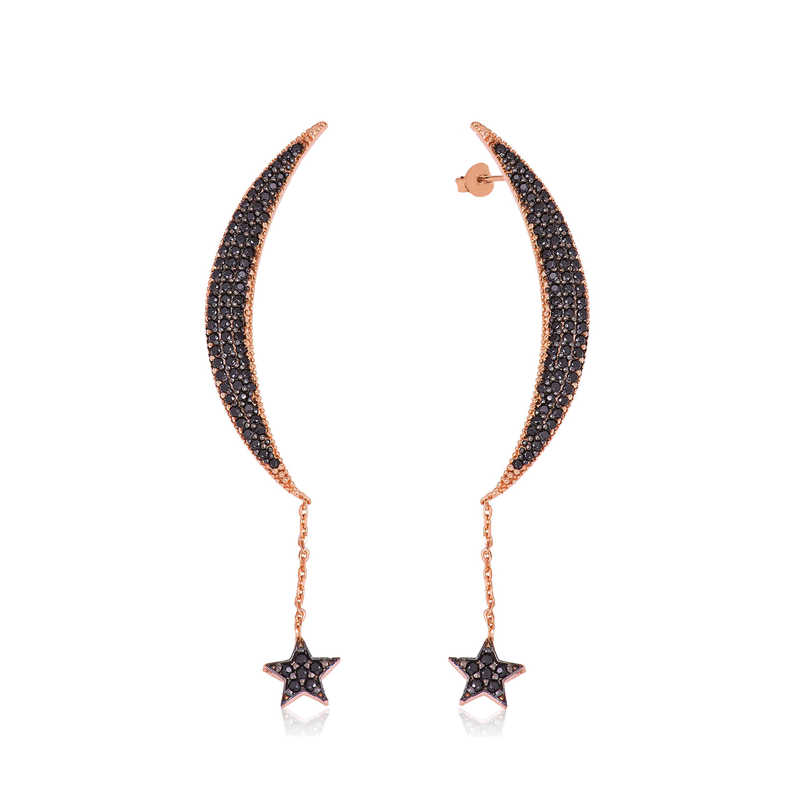 Türk bayrağının ilhamını da kan gölüne yansıyan ay ve yıldızdan aldığını biliyoruz. Bayrağın taşıdığı kutsal anlamı taşımak ve sevdiklerinizle paylaşmak için kaçırılmayacak bir fırsat sunuyoruz. 925 ayar gümüşten imal edilmiş olan bu ay yıldız bayan küpe üzerindeki siyah taşlar zirkondur. Gümüş üzerine rose kaplama yapılmıştır. Rose kaplama yapılan tüm gümüş bayan küpe modelleri parlaklığını uzun süre muhafaza eder, gümüşe pembe rengini verir, oksitlenmeyi geciktirir. Tüm gümüş bayan küpe modellerimizde olduğu gibi gümüş zincirli ay yıldız bayan küpe de el emeği ile üretilmiştir. Gümüş ve değerli taşlar nedeniyle belirtilen ürün ağırlığında ± %10 sapma olabilmektedir.