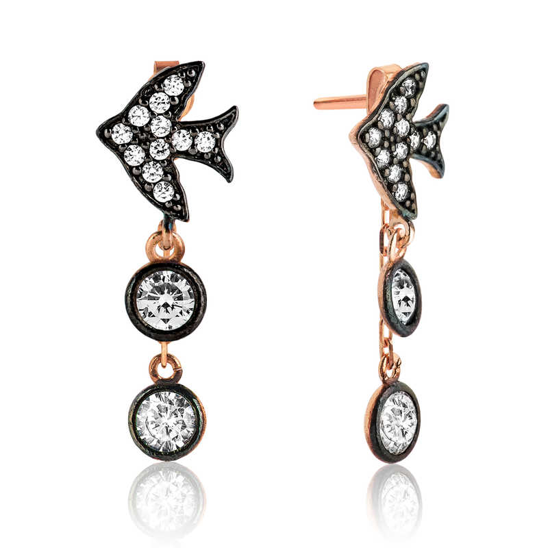 Kuş pek çok kültürde aşk, başarı, kariyer, iyi talihin, bolluğun ifadesi olduğu bilinmektedir… Bu mistik havadan esinlenerek tasarlanan bu küpe ile daima iyi şansın sizinle olmasına ne dersiniz? Bu şık ve anlamlı küpeyi doğum günü hediyesi, sevgililer günü hediyesi veya annelere hediye olarak özel günlerde tercih edilebilecek mükemmel bir seçenektir. Zincirli kuş bayan küpe; 925 ayar gümüşten imal edilmiştir. Gümüş üzerine rose altın kaplama yapılmıştır. Rose altın kaplama yapılan gümüş küpe modelleri parlaklığını uzun süre muhafaza eder, gümüş rengini pembe renge dönüştürür ve oksitlenmeyi geciktirir. Tüm gümüş küpelerde olduğu gibi gümüş zincirli kırlangıç küpe modeli de tamamen el emeği ile üretilmiştir. Gümüş ve değerli taşlar nedeniyle belirtilen ortalama ürün ağırlığında ± %10 sapma olabilmektedir.