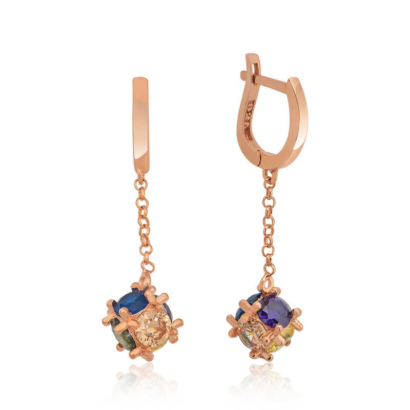 Gümüş Zincirli Renkli Taşlı Küp Küpe