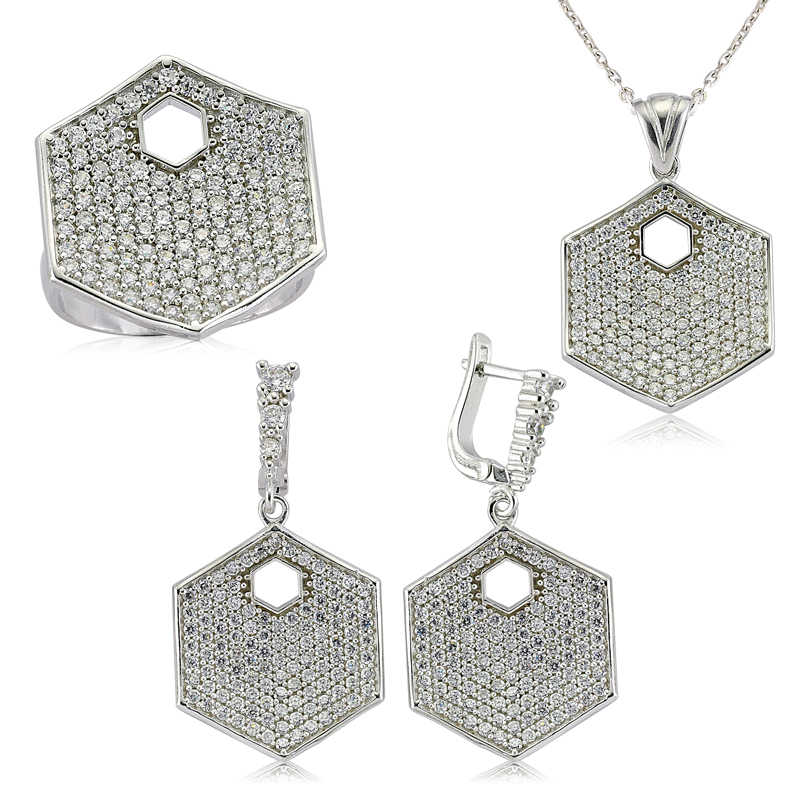 Gümüş Zirkon Taşlı Altıgen Bayan Set