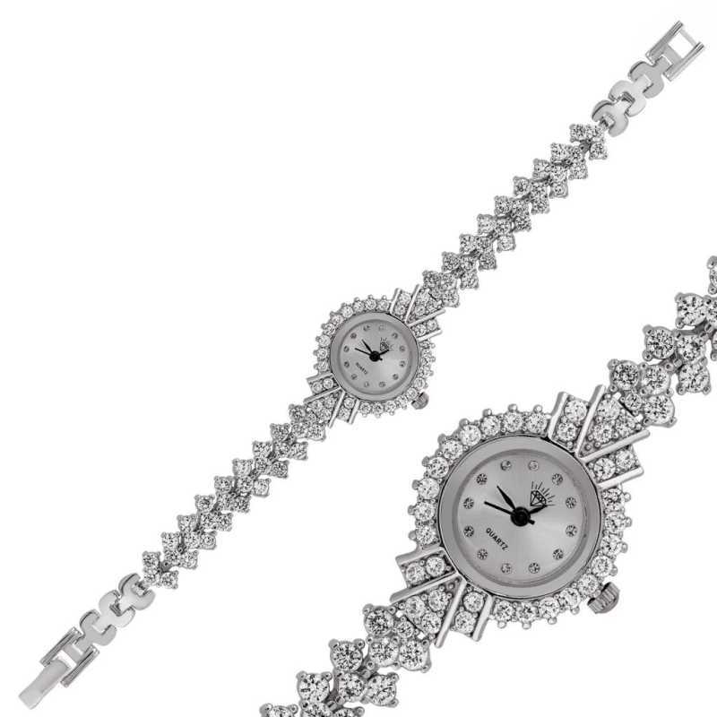 Gümüş Zirkon Taşlı Bayan Saat