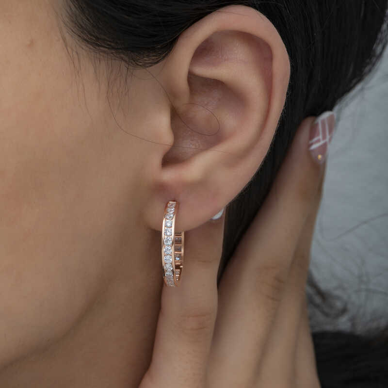 Şık ve spor bu halka küpeyi gündelik hayatta çok rahatça kullanabilirsiniz. Gümüş halka kadın küpe; doğum günü hediyesi, sevgililer günü hediyesi veya annelere hediye olarak özel günlerde tercih edilebilecek mükemmel bir seçenektir. Gümüş halka kadın küpe; 925 ayar gümüşten imal edilmiştir. Gümüş üzerine rose kaplama yapılmıştır. Rose kaplama yapılan gümüş halka kadın küpe parlaklığını uzun süre muhafaza eder ve oksitlenmesi gecikir. Tüm kadın küpelerde olduğu gibi gümüş zirkon taşlı halka kadın küpe de el emeği ile üretilmiştir. Gümüş ve değerli taşlar nedeniyle belirtilen ortalama ürün ağırlığında ± %10 sapma olabilmektedir.
