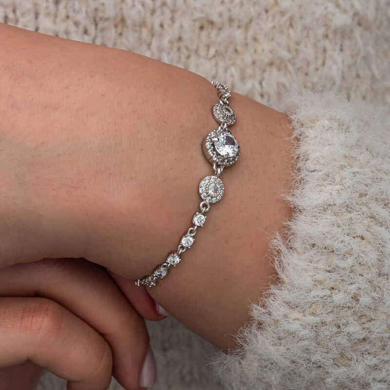 Gümüş Zirkon Taşlı Yuvarlak Kadın Bileklik