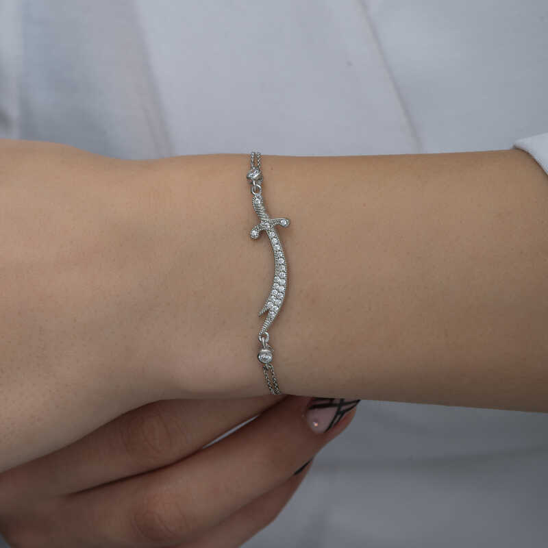 Hz. Ali Uhud savaşında çokça kahramanlık göstermiştir. Savaşta Peygamber Efendimizi korumak isterken kılıcı kırılır.Bunu gören Peygamber Efendimiz kendi kılıcı olan Zülfikar’ı kendisine vermiştir. Kılıcın keskinliği ile diğer kılıçları ortadan ikiye ayırmış ve savaşlarda destanlar yazdırmıştır. Hz. Ali Zülfikar kılıcıyla beraber savaşlardadır artık… Hz.Ali"nin vefatından sonra kılıcın cennete götürüldüğüne inanılıyor. Bir başka rivayete göre ise Dicle ve Fırat nehirlerinin arasında olduğu biliniyor. İslam ordularına hükmedecek kişi o kılıcın sahibi olup orduların başkomutanı olacaktır. Bu maneviyatla hazırlanmış olan bu tasarım çok dikkat çekicidir. Bu şık bileklik; doğum günü hediyesi, sevgililer günü hediyesi veya annelere hediye olarak özel günlerde tercih edilebilecek mükemmel bir seçenektir. Zülfikar kılıcı kadın bileklik modeli 925 ayar gümüşten imal edilmiştir. Bu özel tasarım üzerinde bulunan taşlar zirkondur. Bu kadın gümüş bileklik üzerine rodyum kaplama yapılmıştır. Rodyum kaplama yapılan bileklikler parlaklığını uzun süre muhafaza eder, oksitlenmeyi geciktirir. Tüm gümüş bilekliklerde olduğu gibi bu gümüş Zülfikar kılıcı kadın bileklik modeli de el emeği ile üretilmiştir. Gümüş ve değerli taşlar nedeniyle belirtilen ortalama ürün ağırlığında ± %10 sapma olabilmektedir.