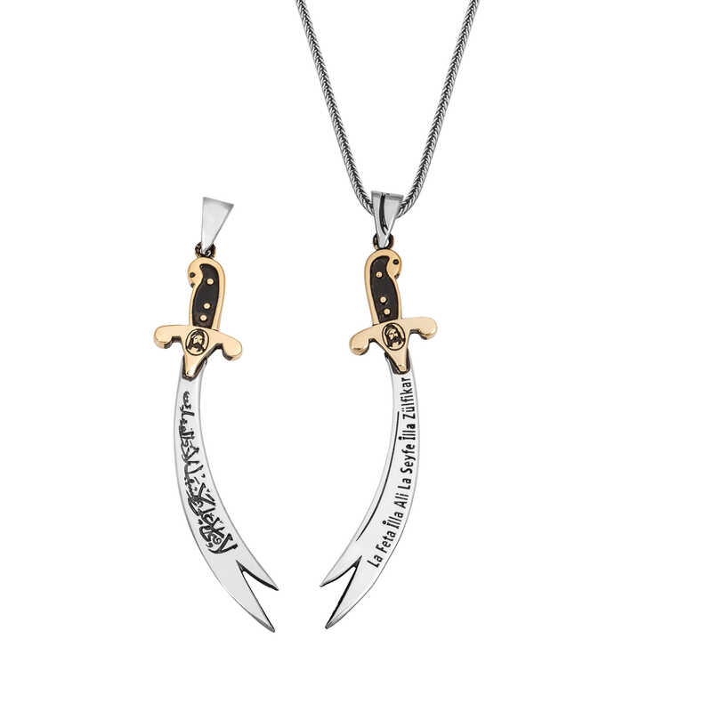 Hz. Ali Uhud savaşında çokca kahramanlık göstermiştir. Savaşta Peygamber Efendimizi korumak isterken kılıcı kırılır.Bunu gören Peygamber Efendimiz kendi kılıcı olan Zülfikar’ı kendisine vermiştir. Kılıcın keskinliği ile diğer kılıçları ortadan ikiye ayırmış ve savaşlarda destanlar yazdırmıştır. Hz. Ali Zülfikar kılıcıyla beraber savaşlardadır artık… Hz.Alinin vefatından sonra kılıcın cennete götürüldüğü biliniyor. Bir başka rivayete göre ise Dicle ve Fırat nehirlerinin arasında olduğu biliniyor. İslam ordularına hükmedecek kişi o kılıcın sahibi olup orduların başkomutanı olacaktır. Bu şık kolye; doğum günü hediyesi, sevgililer günü hediyesi veya hediye olarak özel günlerde tercih edebilirsiniz. Kolye 925 ayar gümüşten imal edilmiştir. Gümüş üzerine oksit kaplama yapılmıştır. Oksit kaplama yapılan gümüş kolye modelleri otantik bir görünüme kavuşur, kararması gecikir. Tüm kolye modellerinde olduğu gibi gümüş zülfikar kılıcı kolye modeli de tamamen el emeği ile üretilmiştir. Gümüş ve değerli taşlar nedeniyle belirtilen ortalama ürün ağırlığında ± %10 sapma olabilmektedir.