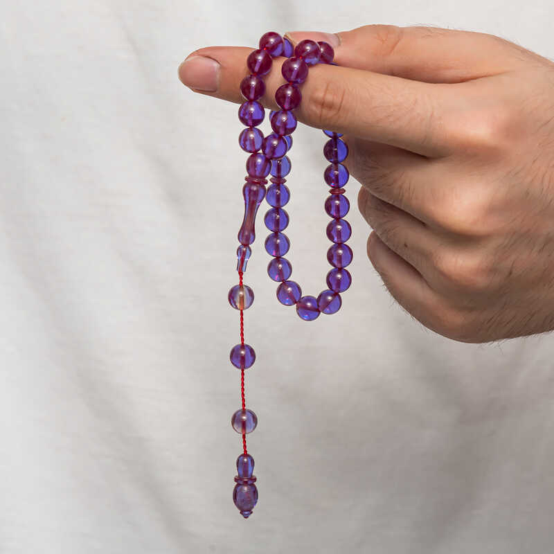 Kehribar, çam ağacı reçinesinin toprak altında uzun yıllar boyunca birikerek oluşan bir maddedir. Hemen hemen taş ile aynı sertliktedir fakat yoğunluğu düşüktür. Çam kokusu yayar. Oluşumu uzun zaman aldığından ve yapay olarak yapılamadığından değerli bir maddedir. Sıkma kehribar ise kehribar taşından farklı olarak onun özelliklerini taşıyan, görüntü itibariyle ona benzeyen fakat gerçek olmayan bir malzemedir. Ülkemizde ve dünyanın bir çok yerinde kehribar taşından çeşitli malzemeler üretilmiştir. Ülkemizde en yaygın olarak tesbih üretilmektedir. Kehribar tesbihler elde ısındıkça kehribar benzeri bir koku verir ve renk değiştirir. Bir çok rengi vardır. Hatta iki rengin birleşiminden oluşan kehribar tesbih modelleri de vardır.Ülkemizin güzide tesbih ustaları bu malzemeyi sıklıkla işlemek suretiyle çeşitli sanat eserleri meydana getirirler. Bu tesbihler de koleksiyonerler tarafından alınıp satılmaktadır. Sıkma kehribar tesbih modeli de günlük hayatta kullanılabilecek çok şık bir tesbih çeşididir. Özel günlerin vazgeçilmez hediyesi sıkma kehribar tesbihler erkekler için doğum günü, sevgililer günü ve babalar günü gibi özel zamanlarda hediye olarak tercih edilebilir.Sıkma kehribar tesbih modeli diğer kehribar tesbih modellerinde olduğu gibi tamamen el emeği ile imal edilmiştir.