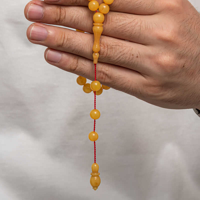 Kehribar, çam ağacı reçinesinin toprak altında uzun yıllar boyunca birikerek oluşan bir maddedir. Hemen hemen taş ile aynı sertliktedir fakat yoğunluğu düşüktür. Çam kokusu yayar. Oluşumu uzun zaman aldığından ve yapay olarak yapılamadığından değerli bir maddedir. Sıkma kehribar ise kehribar taşından farklı olarak onun özelliklerini taşıyan, görüntü itibariyle ona benzeyen fakat gerçek olmayan bir malzemedir. Ülkemizde ve dünyanın bir çok yerinde kehribar taşından çeşitli malzemeler üretilmiştir. Ülkemizde en yaygın olarak tesbih üretilmektedir. Kehribar tesbihler elde ısındıkça kehribar benzeri bir koku verir ve renk değiştirir. Bir çok rengi vardır. Hatta iki rengin birleşiminden oluşan kehribar tesbih modelleri de vardır.Ülkemizin güzide tesbih ustaları bu malzemeyi sıklıkla işlemek suretiyle çeşitli sanat eserleri meydana getirirler. Bu tesbihler de koleksiyonerler tarafından alınıp satılmaktadır. Sıkma kehribar tesbih modeli de günlük hayatta kullanılabilecek çok şık bir tesbih çeşididir. Özel günlerin vazgeçilmez hediyesi sıkma kehribar tesbihler erkekler için doğum günü, sevgililer günü ve babalar günü gibi özel zamanlarda hediye olarak tercih edilebilir.Sıkma kehribar tesbih modeli diğer kehribar tesbih modellerinde olduğu gibi tamamen el emeği ile imal edilmiştir.
